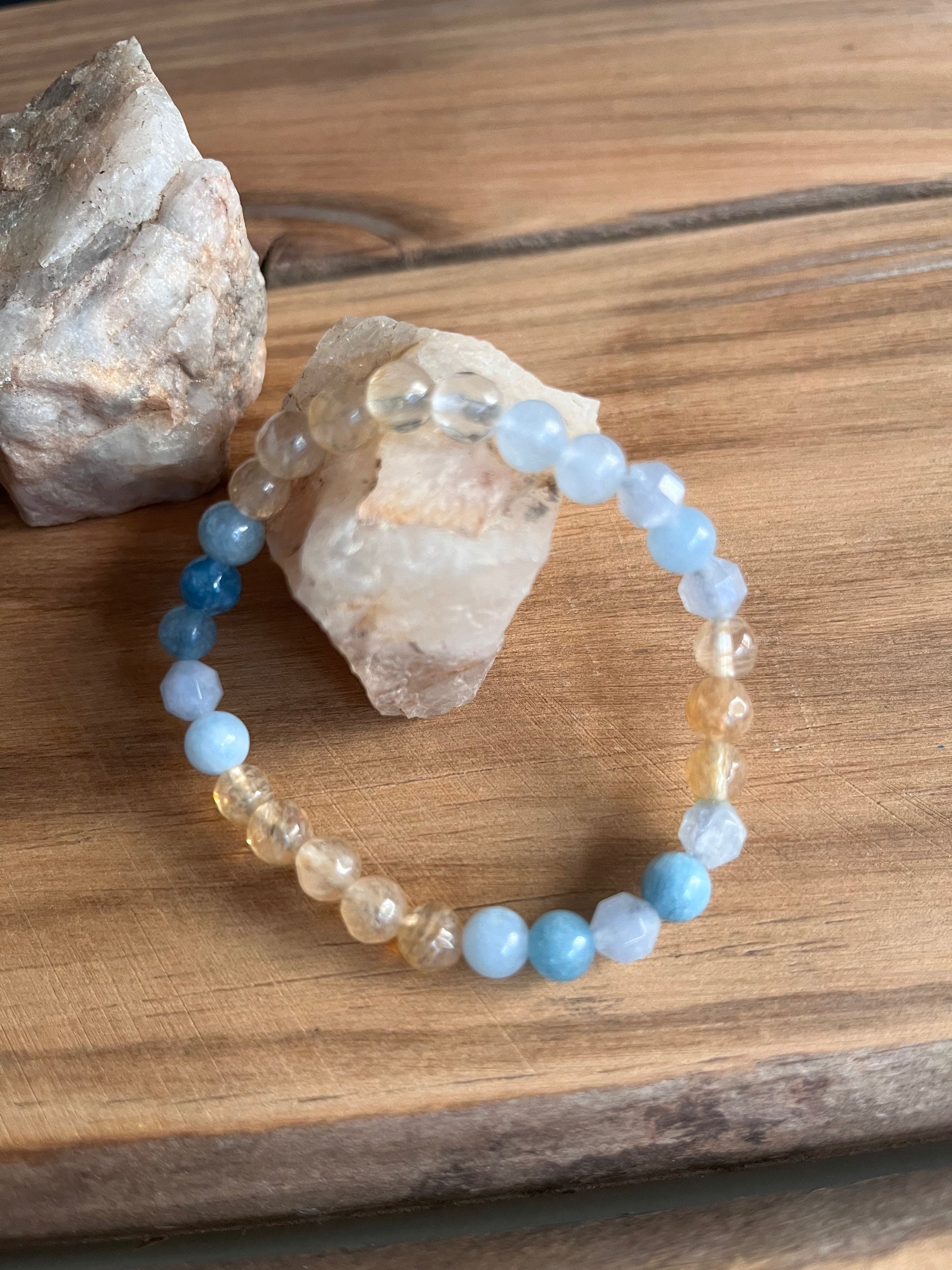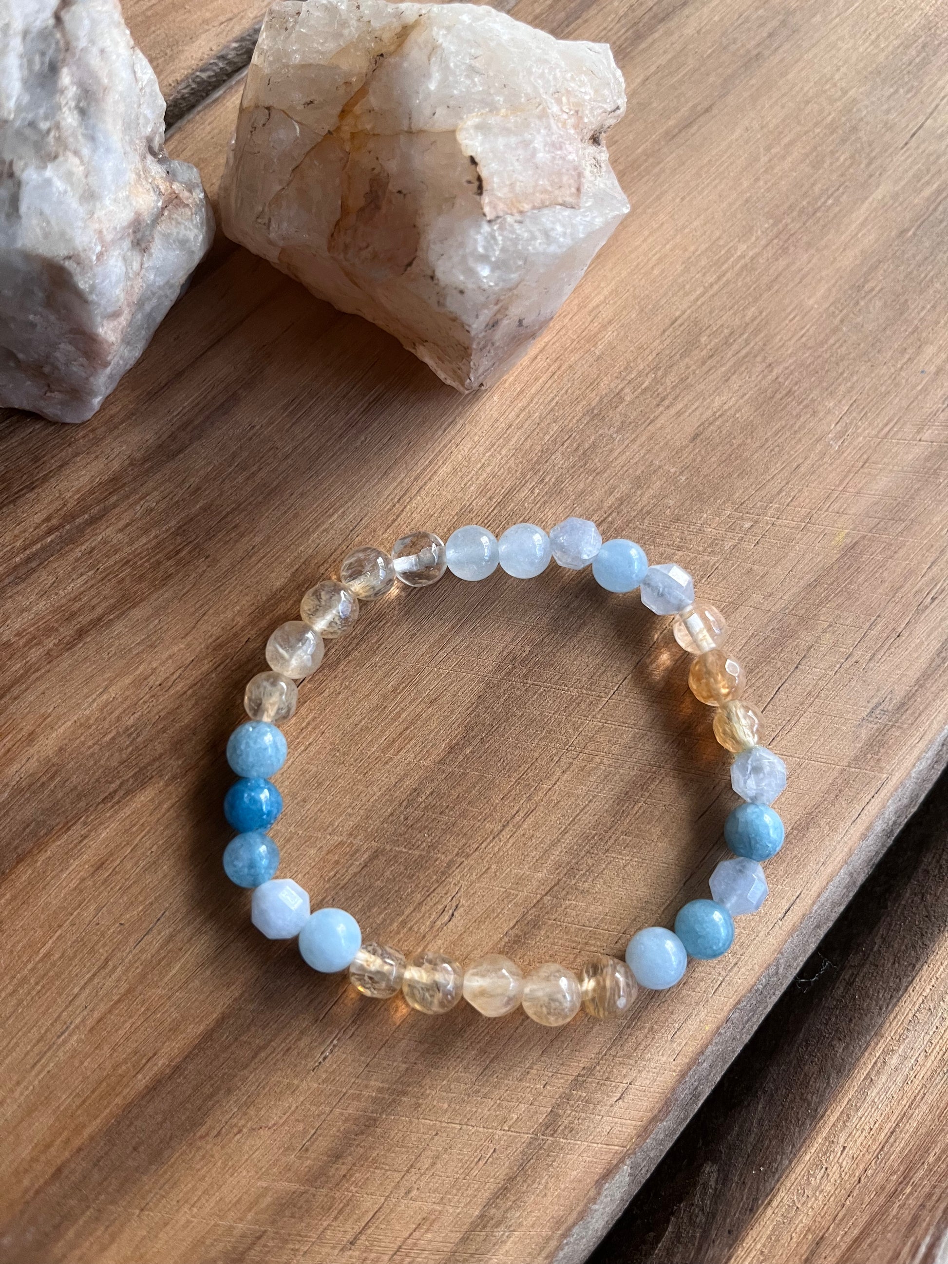 Aguamarina: este mineral es una piedra de coraje. Sus energías calmantes reducen el estrés y relajan la mente. Armoniza el entorno y protege contra la polución.