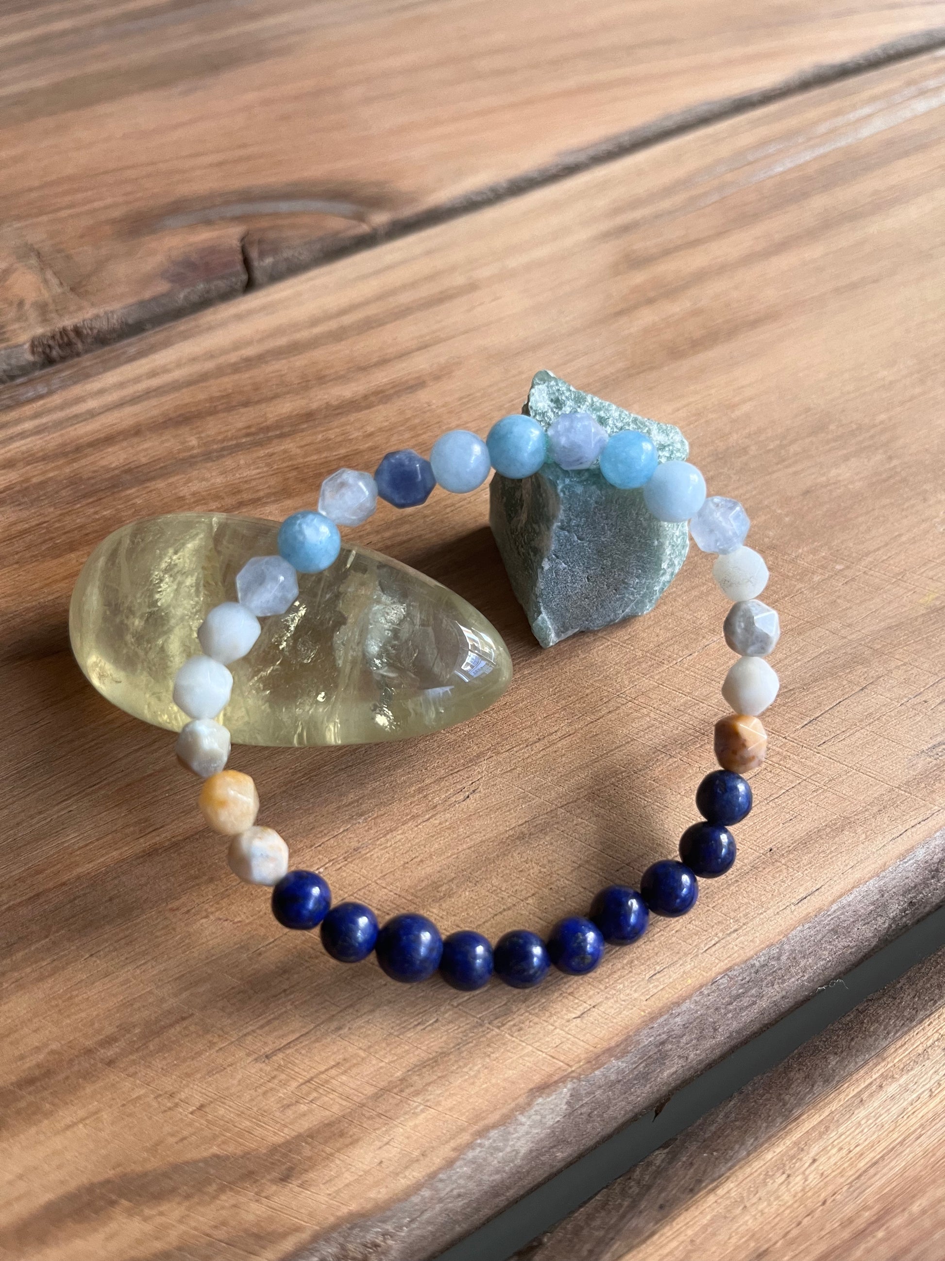Lapislázuli: tiene la habilidad de potenciar sueños y capacidades físicas. Aporta paz, calma y serenidad, desprendiendo el estrés del cuerpo. Armoniza los niveles mentales, espirituales, emocionales y físicos.