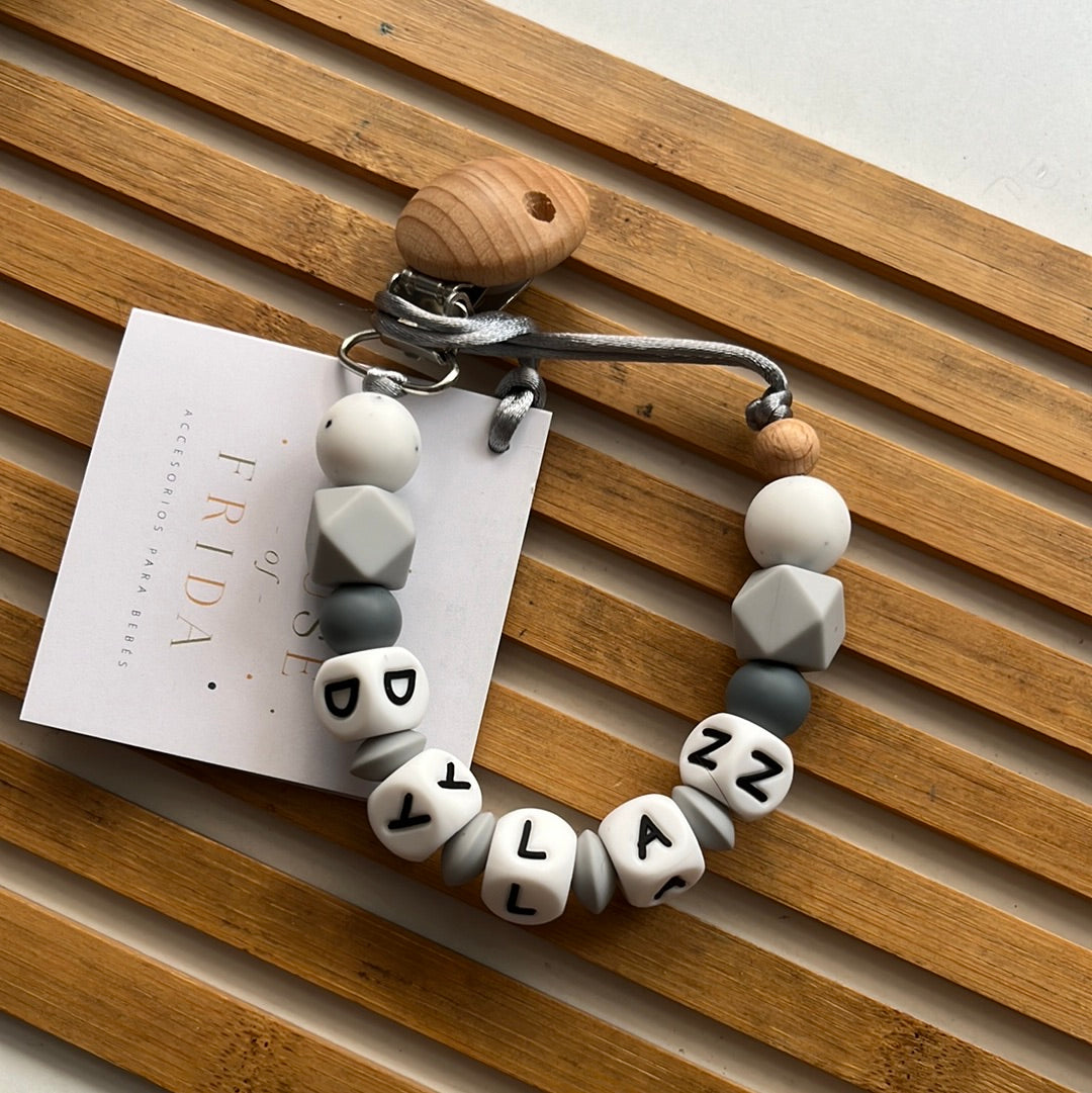 Mordedores y chupeteros 100% silicona certificada orgánica y antibacteriana y madera de haya certificada procedente de bosques sostenibles, mordisqueable y suave para las encías de tu bebé.
