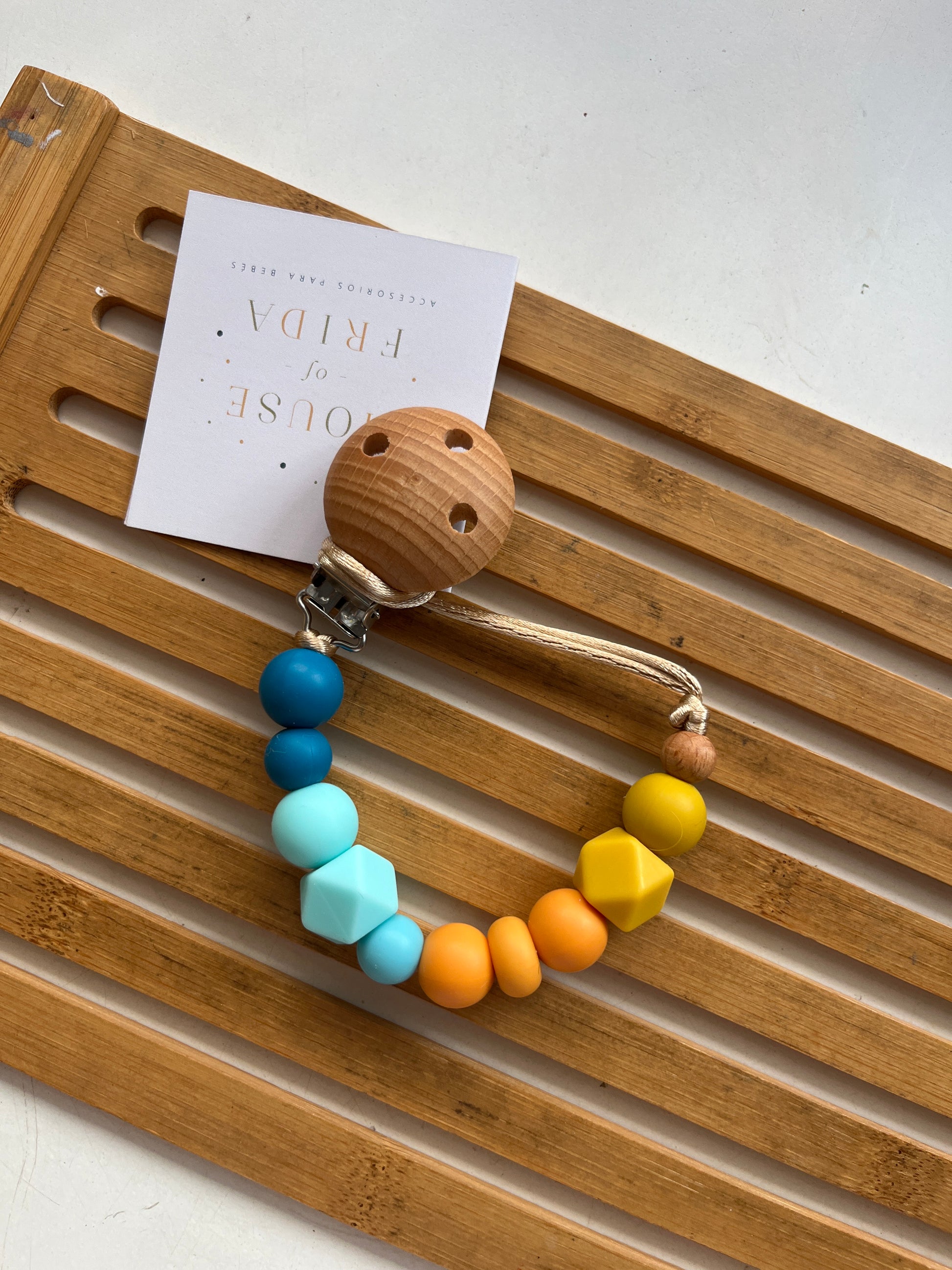 Mordedores y chupeteros 100% silicona certificada orgánica y antibacteriana y madera de haya certificada procedente de bosques sostenibles, mordisqueable y suave para las encías de tu bebé.