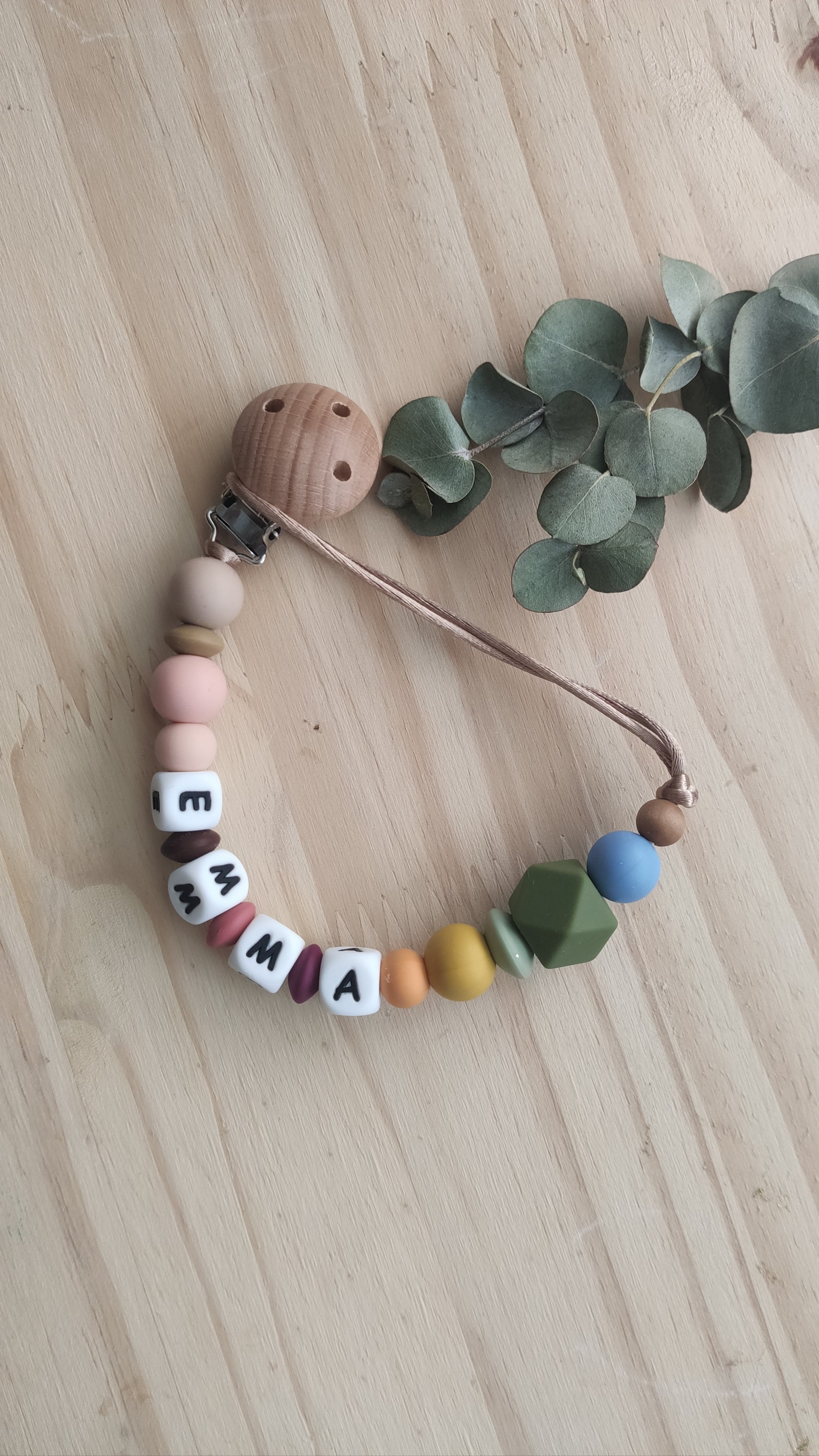 Mordedores y chupeteros 100% silicona certificada orgánica y antibacteriana y madera de haya certificada procedente de bosques sostenibles, mordisqueable y suave para las encías de tu bebé.