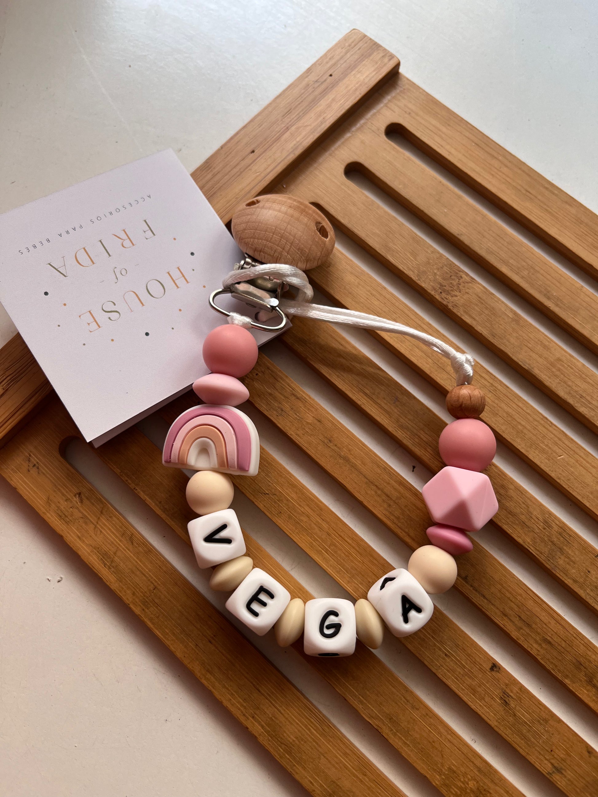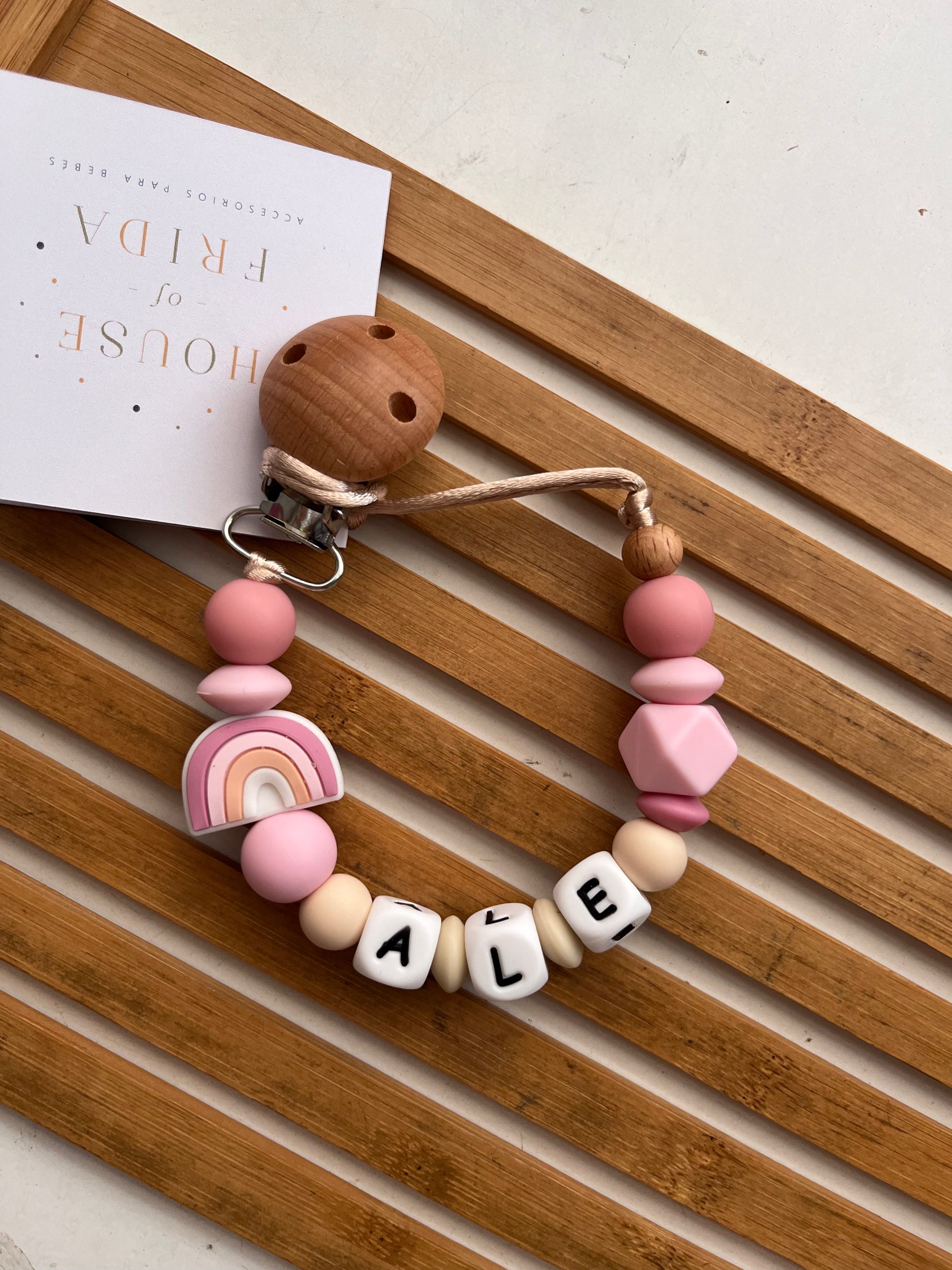 Mordedores y chupeteros 100% silicona certificada orgánica y antibacteriana y madera de haya certificada procedente de bosques sostenibles, mordisqueable y suave para las encías de tu bebé.