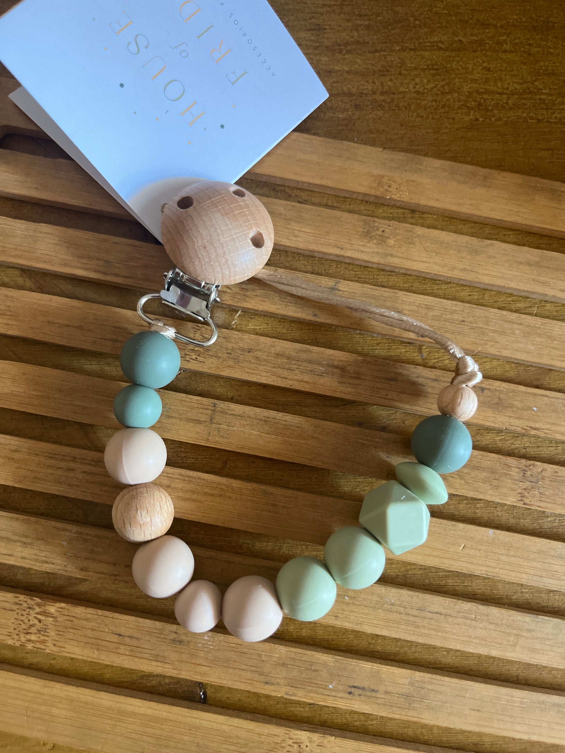 Mordedores y chupeteros 100% silicona certificada orgánica y antibacteriana y madera de haya certificada procedente de bosques sostenibles, mordisqueable y suave para las encías de tu bebé.