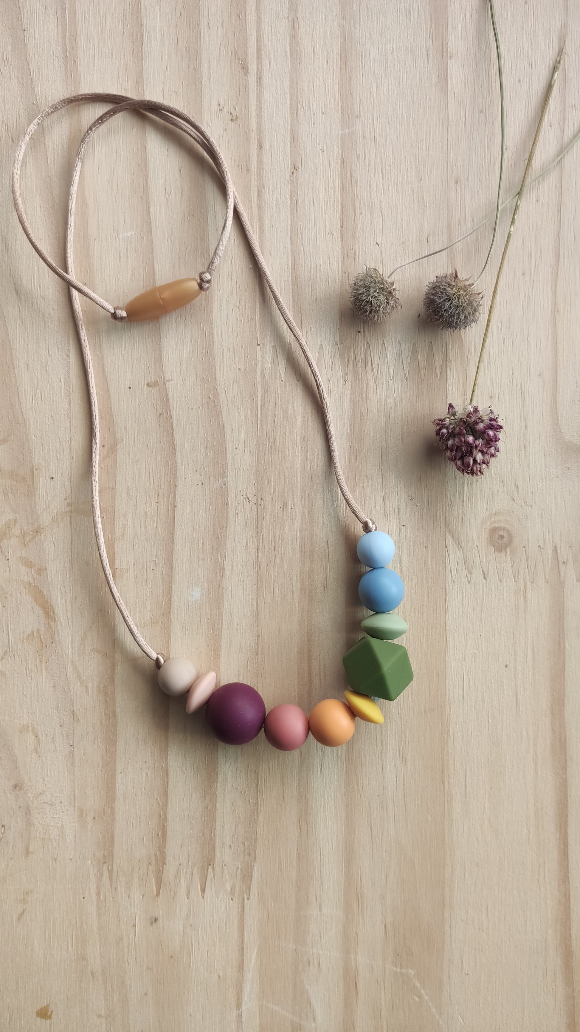 Estos collares sirven para entretener al bebé mientras das el pecho, toma biberón o incluso mientras porteas.