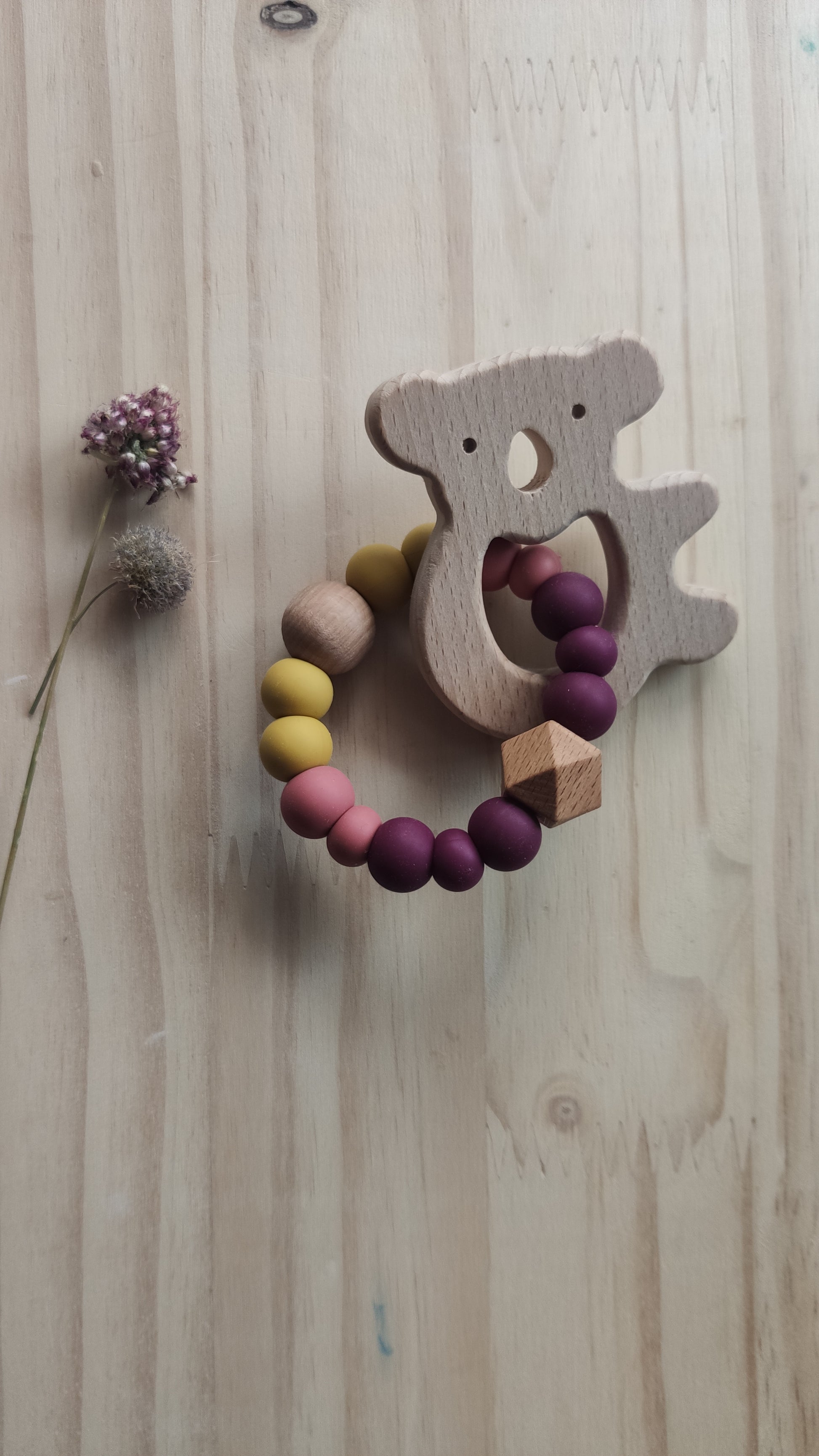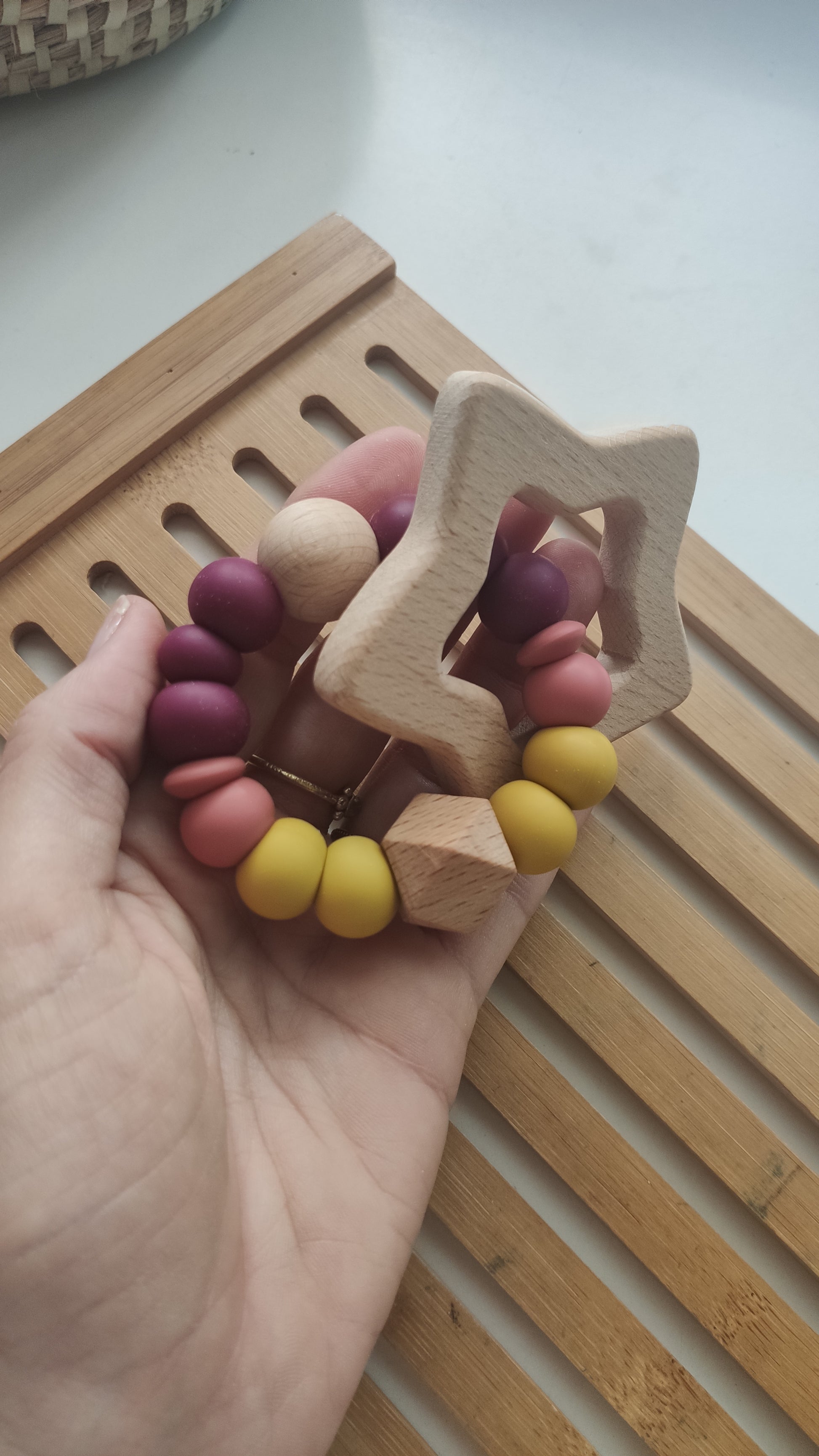 Mordedores y chupeteros 100% silicona certificada orgánica y antibacteriana y madera de haya certificada procedente de bosques sostenibles, mordisqueable y suave para las encías de tu bebé.