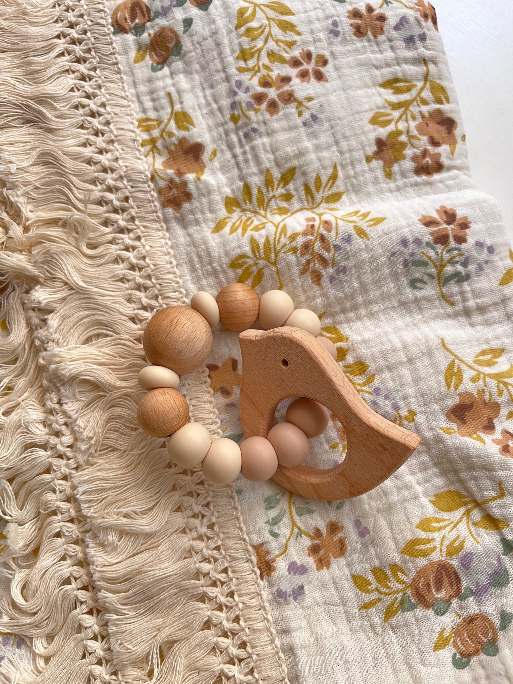 INFORMACION IMPORTANTE: el mordedor de madera puede elegirse entre estas figuras: pájaro, elefante, jirafa, ardilla y estrella.