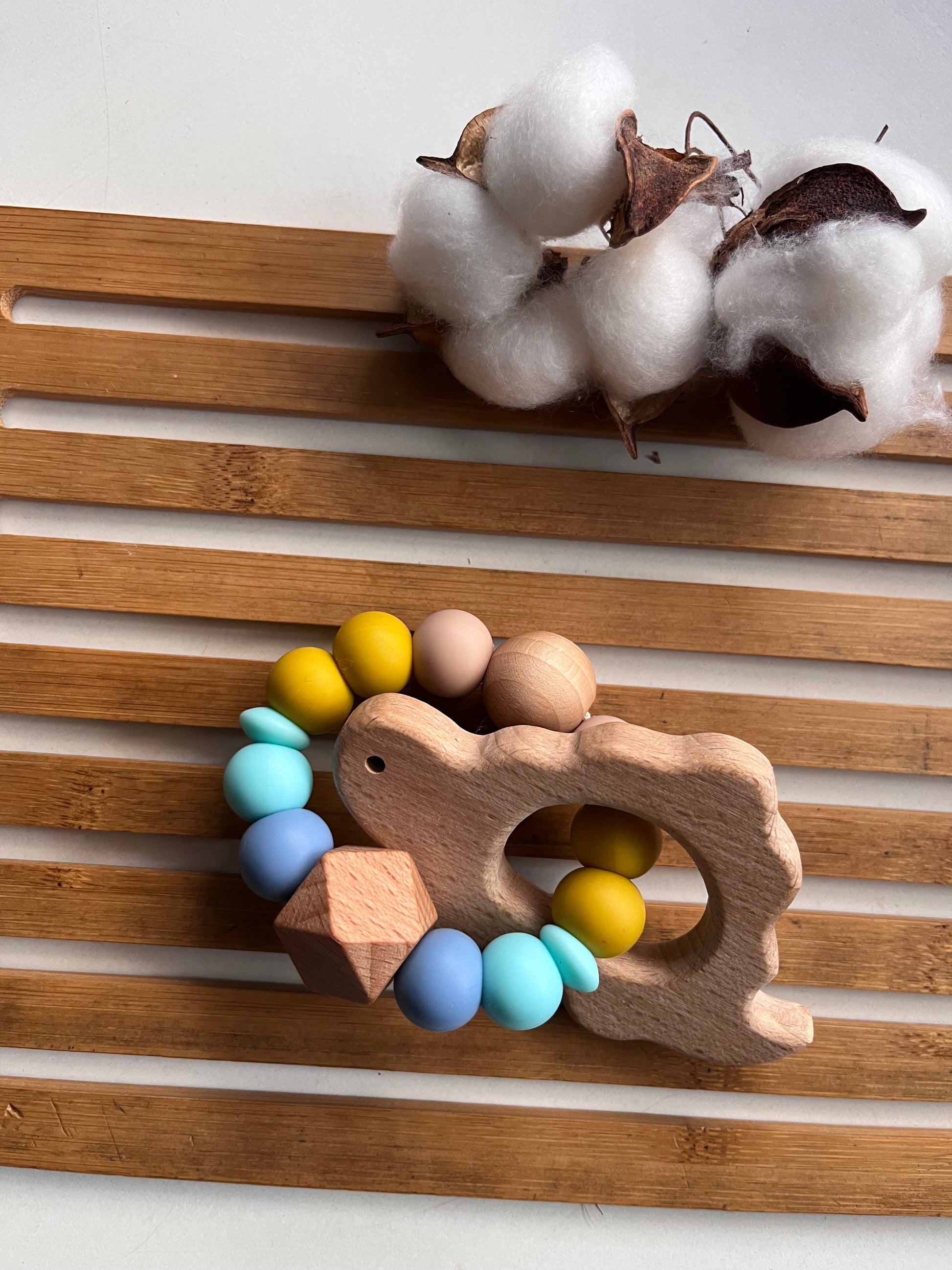 Mordedores y chupeteros 100% silicona certificada orgánica y antibacteriana y madera de haya certificada procedente de bosques sostenibles, mordisqueable y suave para las encías de tu bebé.