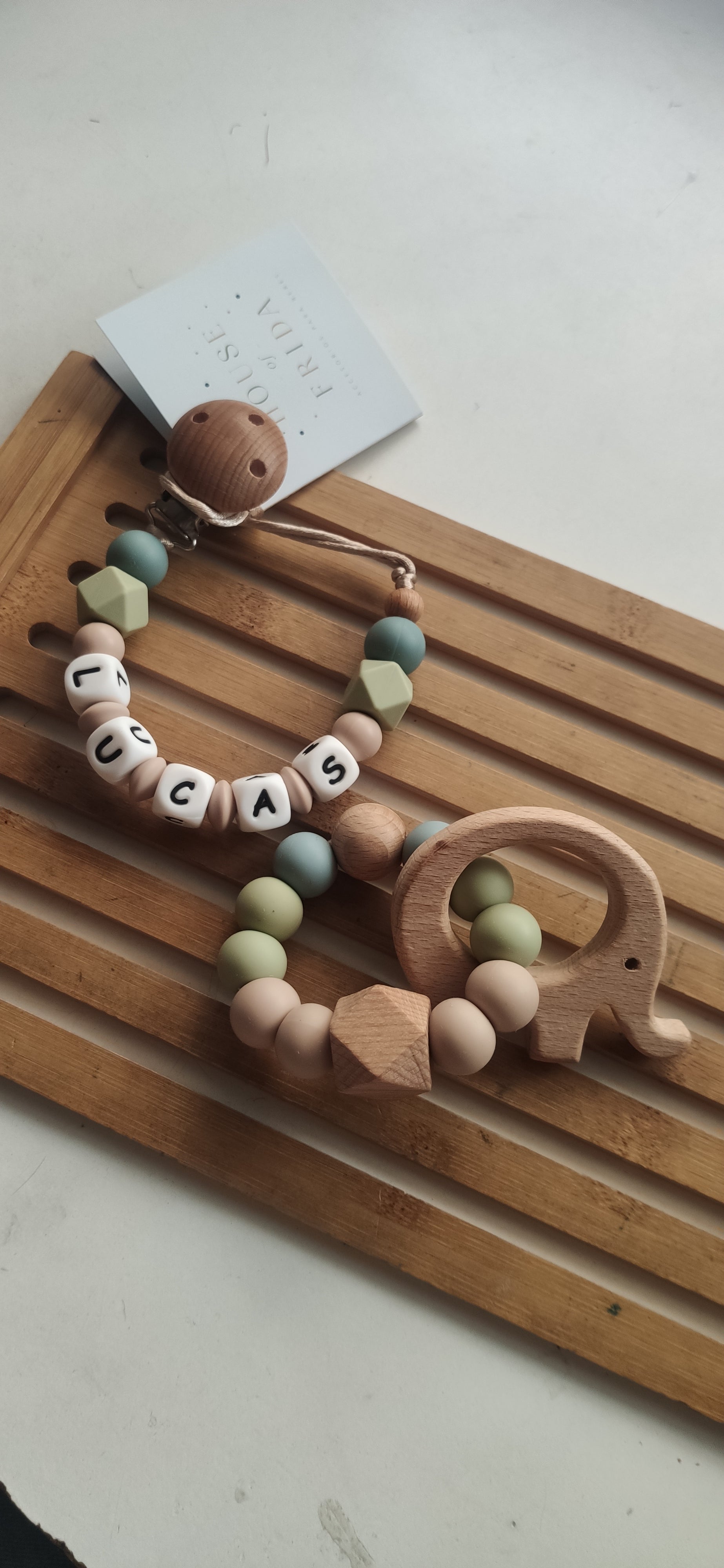 Mordedores y chupeteros 100% silicona certificada orgánica y antibacteriana y madera de haya certificada procedente de bosques sostenibles, mordisqueable y suave para las encías de tu bebé.