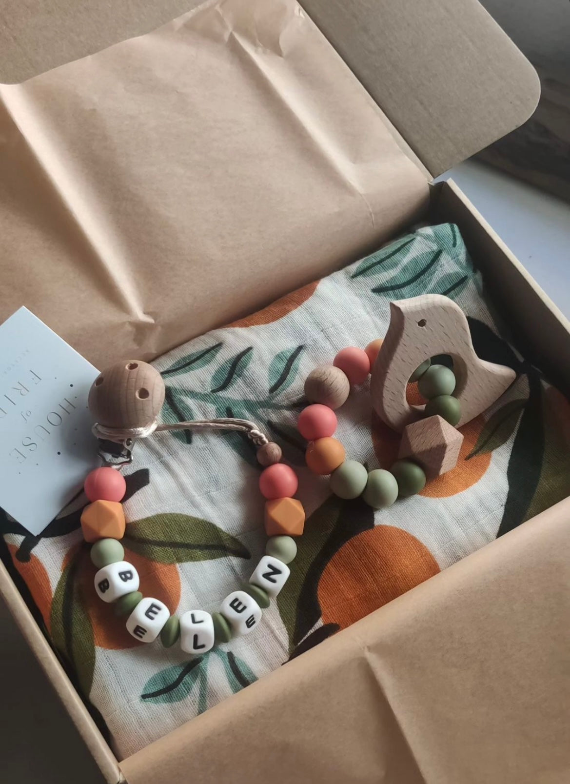 Podéis ver en el carrusel de fotos, a modo de inspiración, distintas combinaciones con esta muselina y acompañarla en un pack de nacimiento con las piezas que queráis.