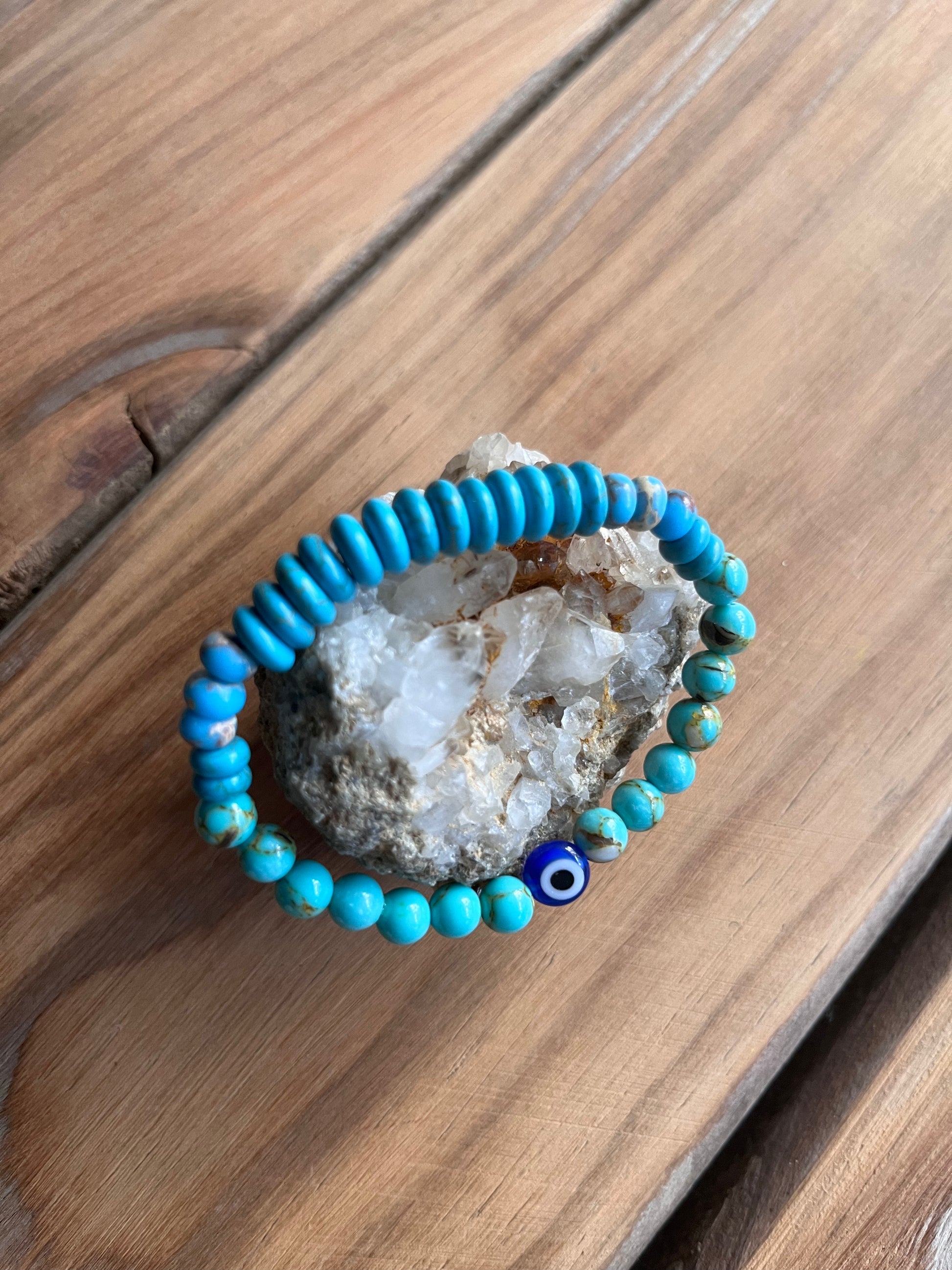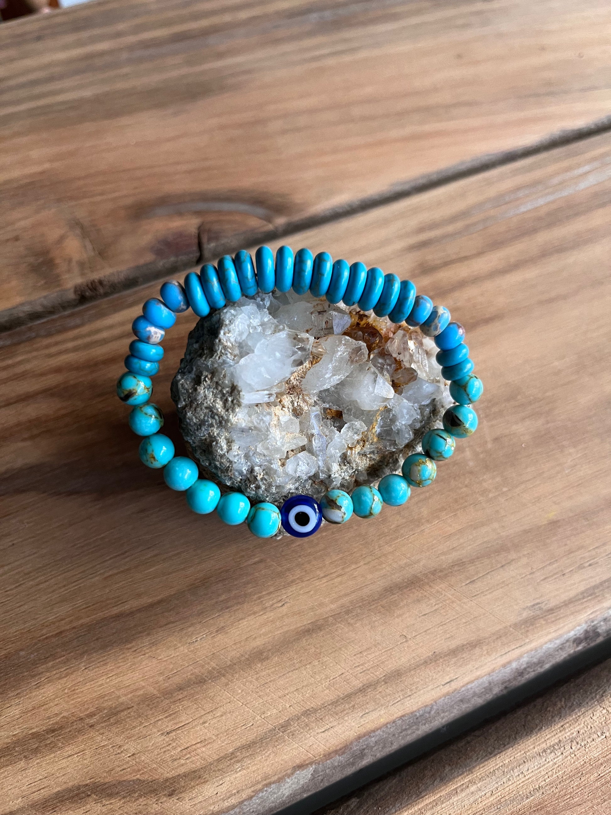 Ojo turco: también conocido como Nazar, es un abalorio con la forma de una gota plana donde se encuentra la figura de un ojo al que se le atribuyen fuerzas protectoras. Es muy usado como talismán o amuleto contra el mal de ojo y las malas energías.